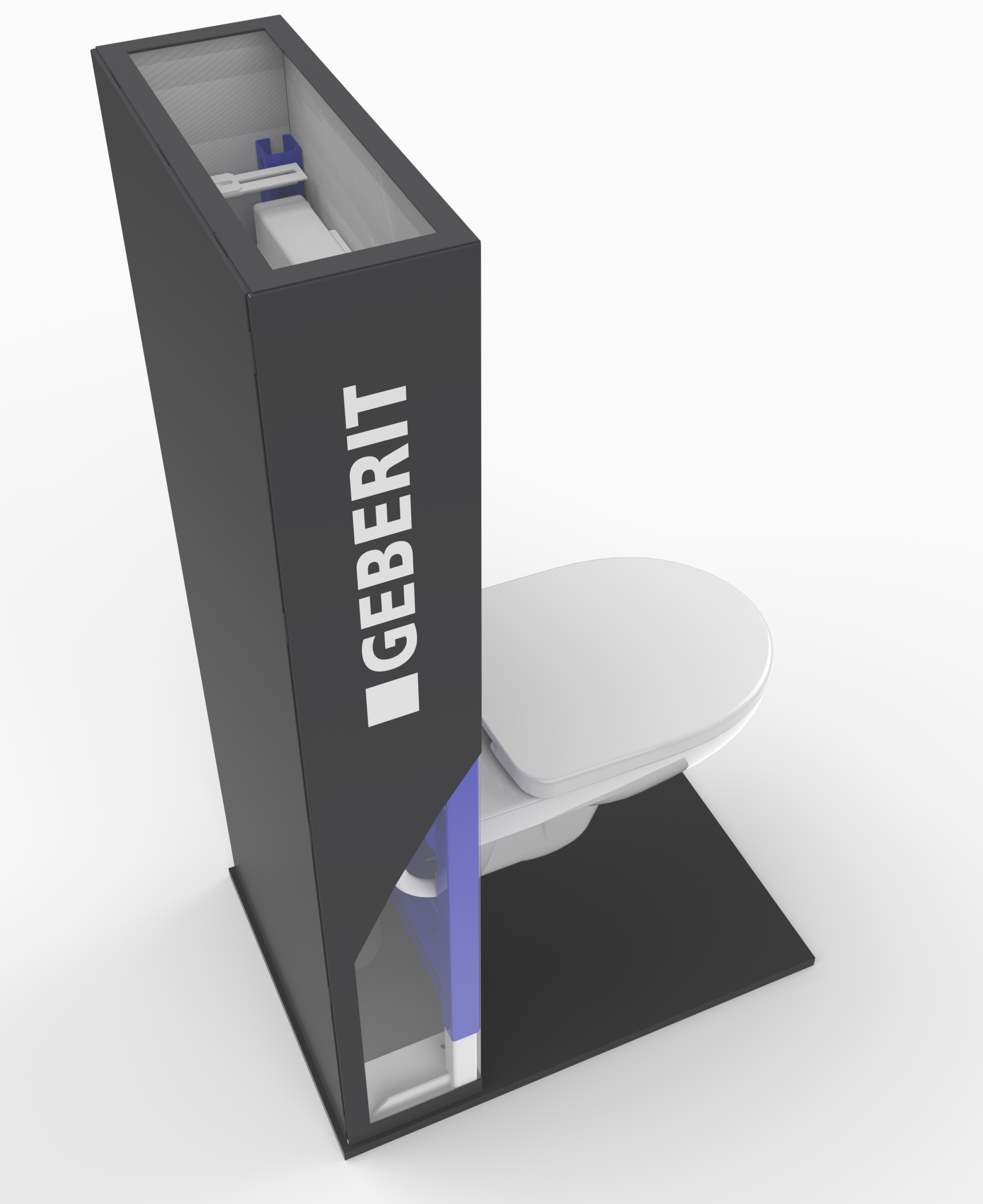 Le présentoir de sol GEBERIT – Pack WC Cocktail est spécialement conçu pour mettre en avant un bâti-support, une cuvette et une plaque de déclenchement. Grâce à son design compact et fonctionnel, il permet une mise en situation réaliste du produit, idéale pour les showrooms, les magasins spécialisés ou les expositions professionnelles.